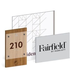 Identity Group is an approved vendor of Architectural and Hospitality Signage for some of the biggest brands. Quality interior hotel signs for brands like Marriott, Hyatt Hotel, Quality Inn, Sleep Inn, Intown Suites, and more. Our brand standard signage follows ADA guidelines and are fabricated with high-quality materials.