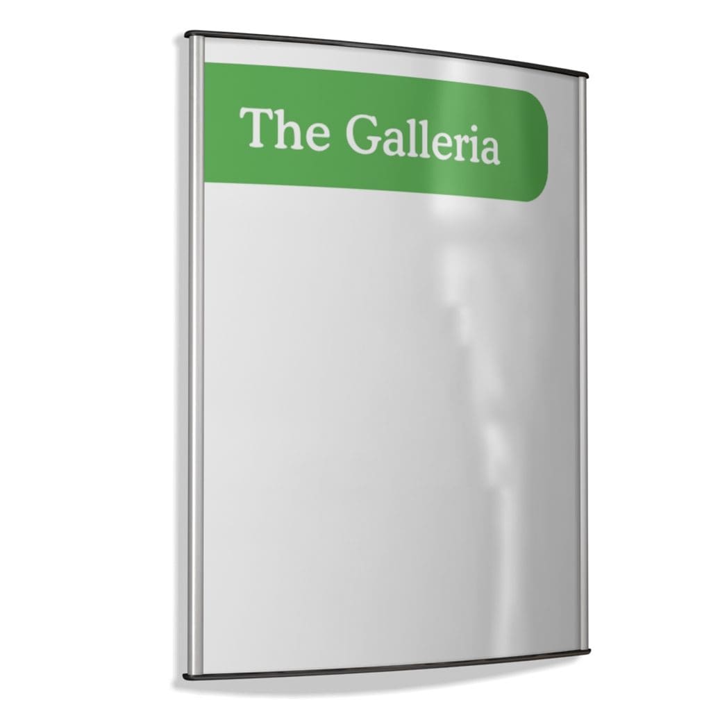 Contoured aluminum sign holds user generated paper insert to get your messaging across. Product comes with frame, a clear lens, two (2) plastic endcaps and one (1) suction cup to help remove the lens. VHB mounting tape is on back of signs for easy mounting.