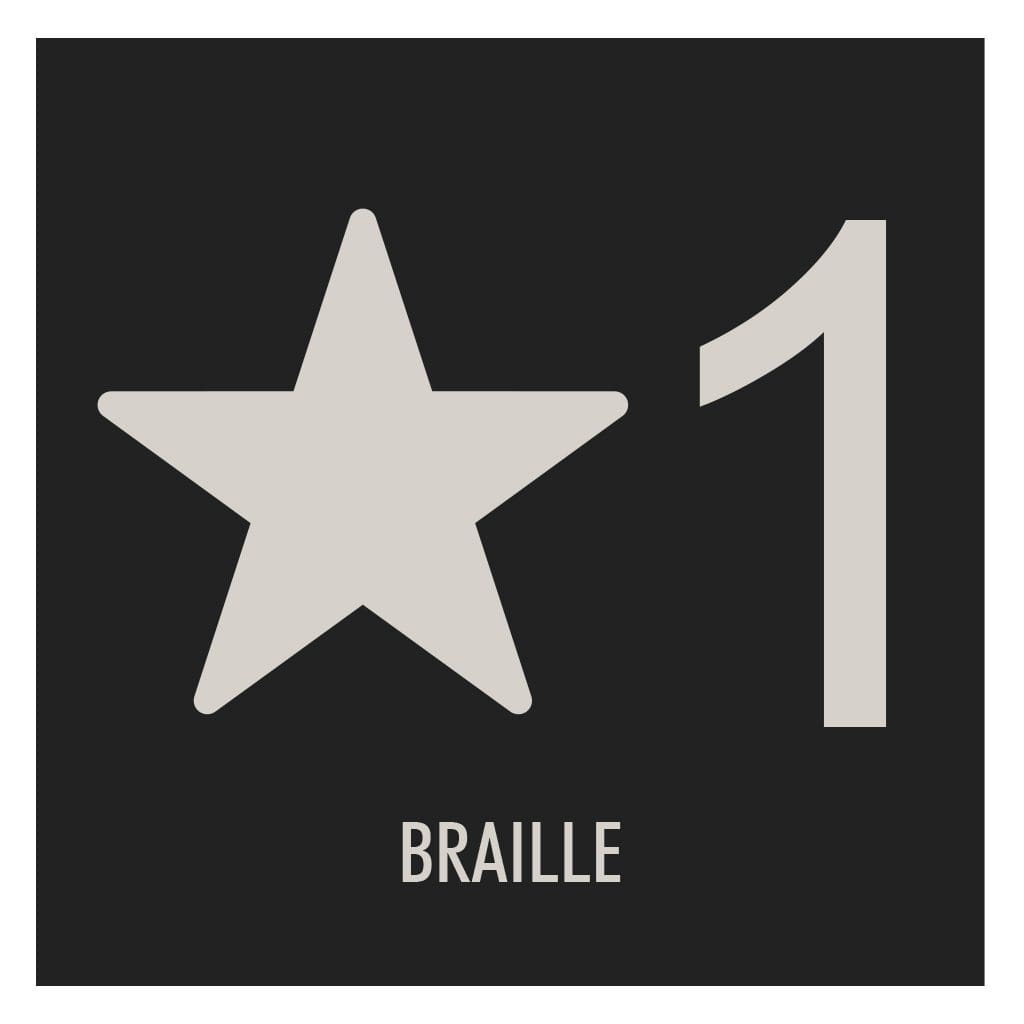 Room identification signs are made with tactile letters and Grade 2 Braille for ADA compliance. Every sign uses easily identifiable words and phrases to make wayfinding easy for guests. Comes with foam tape on back for easy mounting.