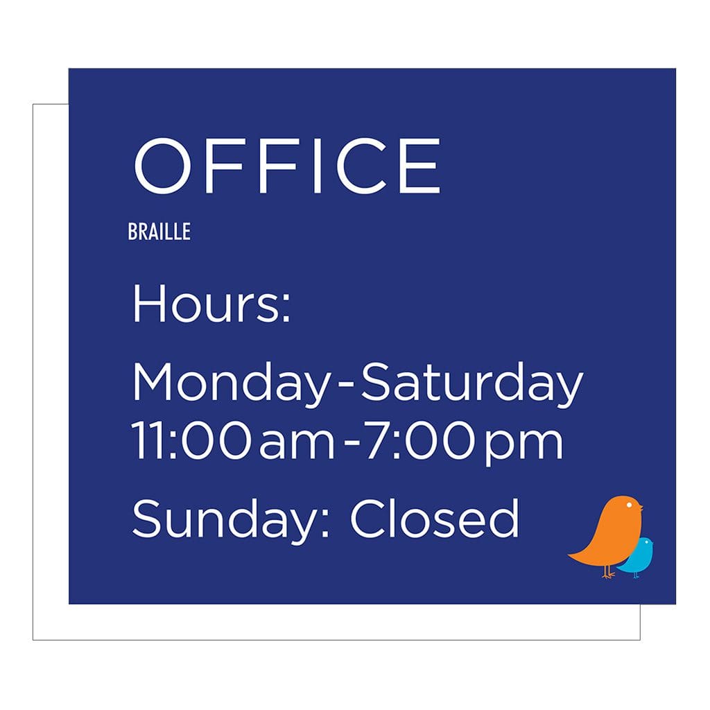 Informational signs use text and symbols to display need to know information quickly and easily to guests and employees. Comes with foam tape on back for easy mounting. Text on sign is digitally printed to comply with ADA Standards.