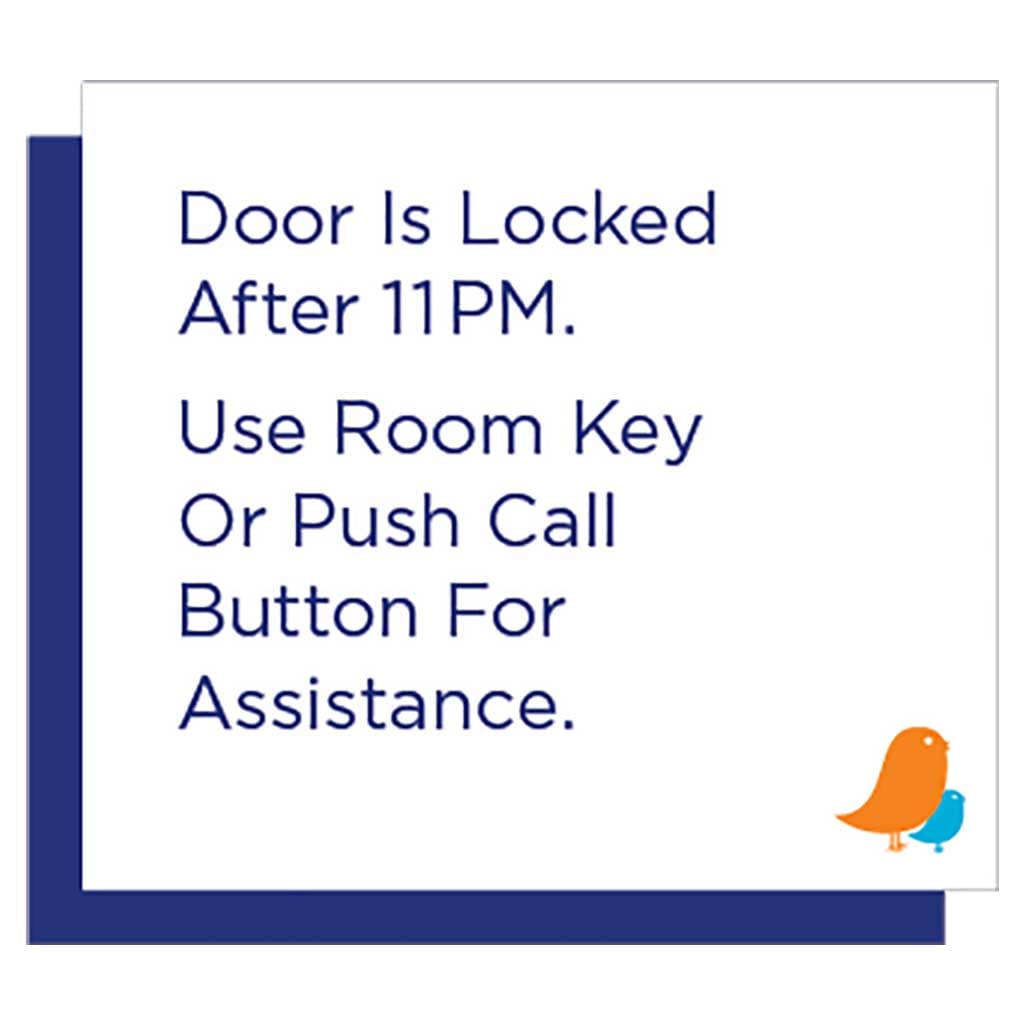 Informational signs use text and symbols to display need to know information quickly and easily to guests and employees. Comes with foam tape on back for easy mounting. Text on sign is digitally printed to comply with ADA Standards.