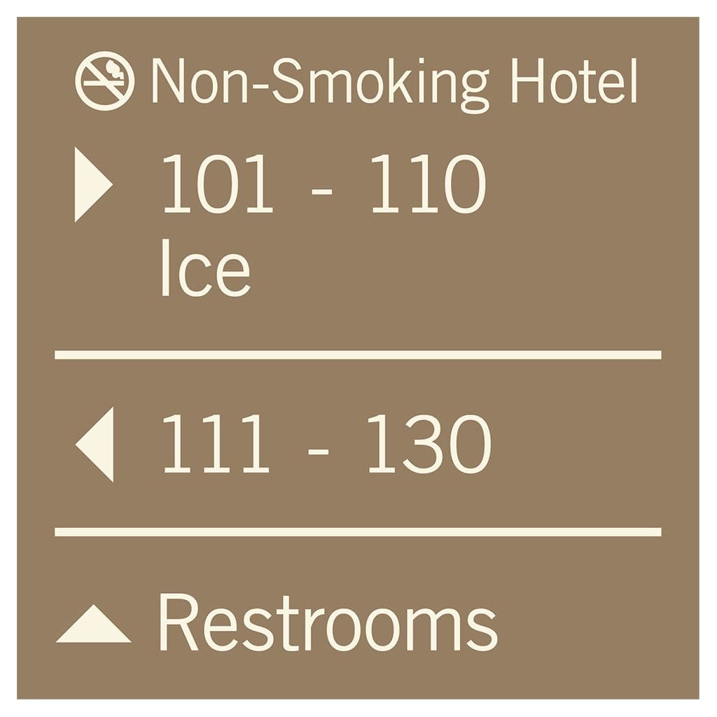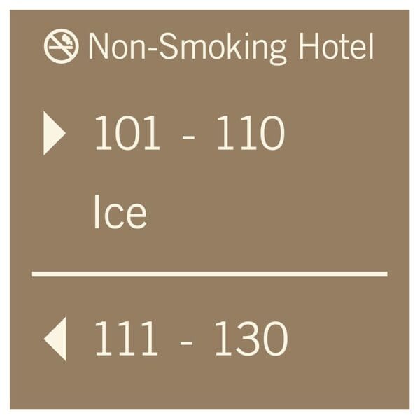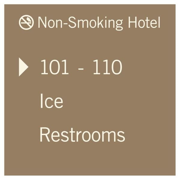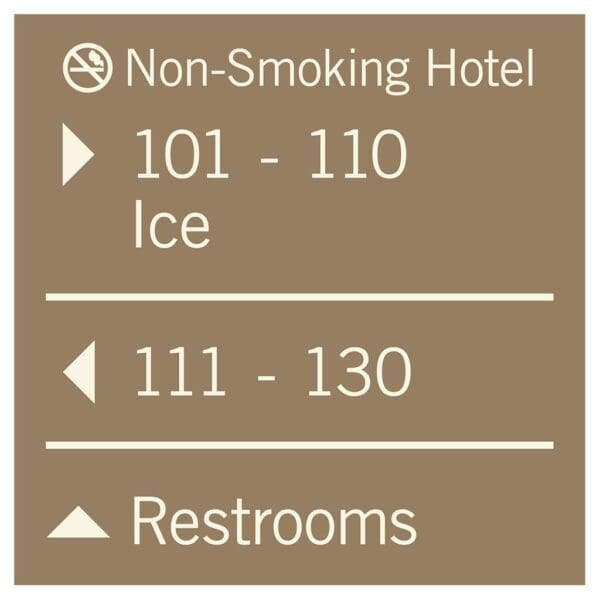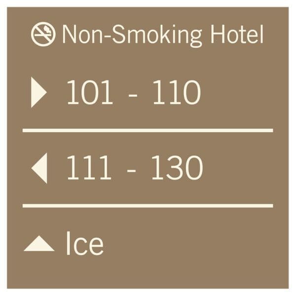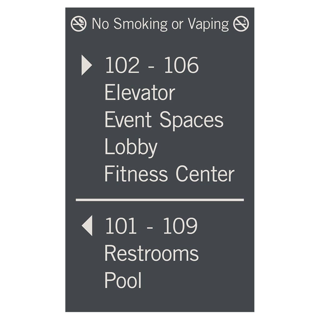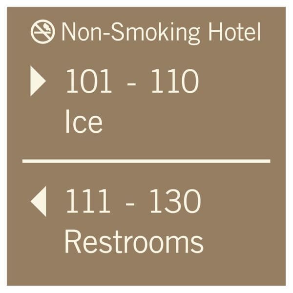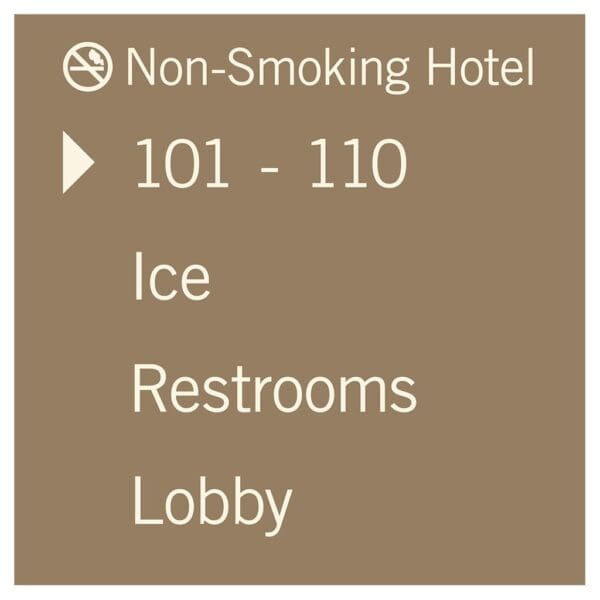 Help guests navigate your hotel easily with directional signs. Signs feature flat copy and come with foam tape for easy mounting. Directionals are made with vandal-proof photopolymer for interior and exterior use.