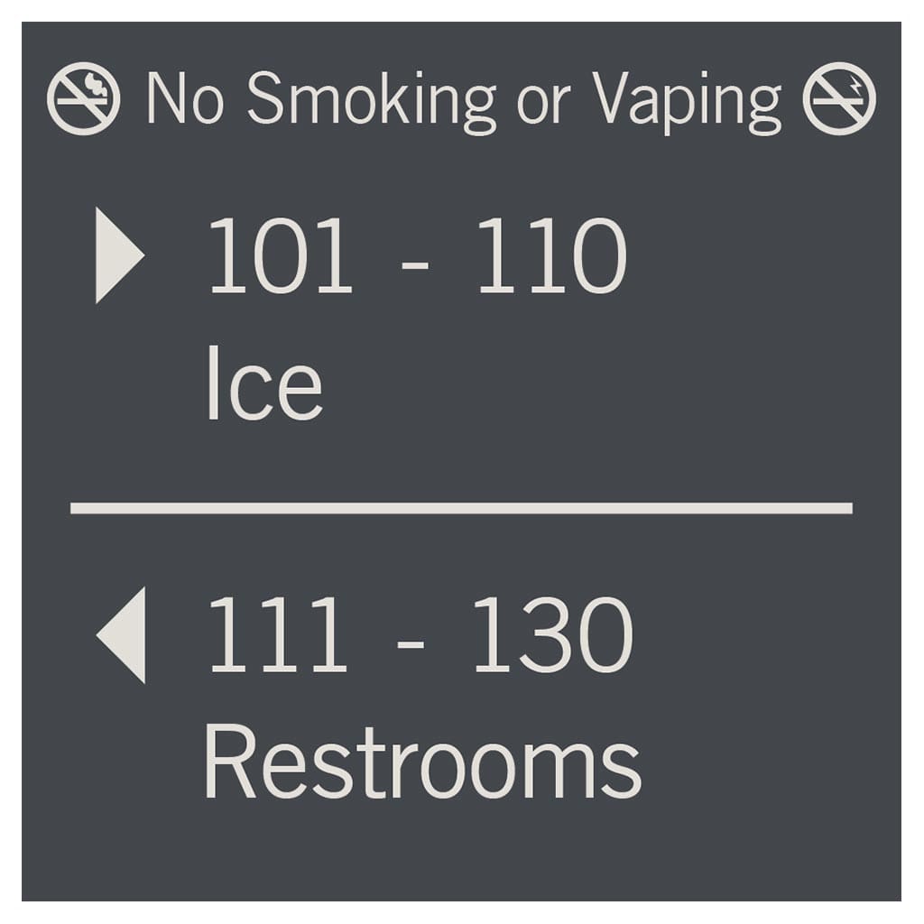 Help guests navigate your hotel easily with directional signs. Signs feature flat copy and come with foam tape for easy mounting. Directionals are made with vandal-proof photopolymer for interior and exterior use.