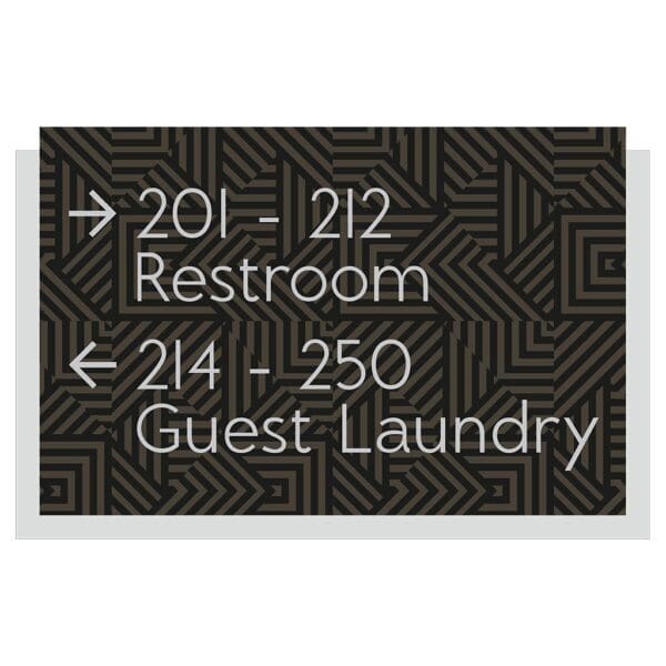 Help guests navigate your hotel easily with directional signs. Signs feature tactile copy for ADA-compliance and come with foam tape for easy mounting. For interior use only.