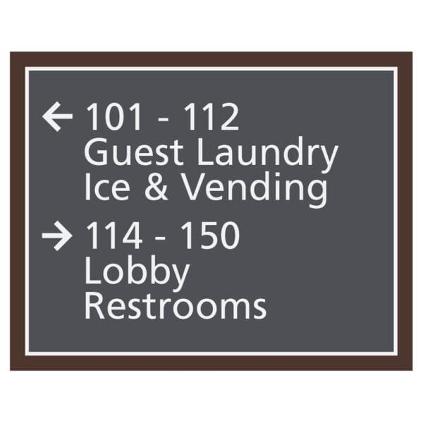 Help guests navigate your hotel easily with directional signs. Signs feature raised copy and come with foam tape for easy mounting. Directionals are made with vandal-proof photopolymer for interior or exterior use.