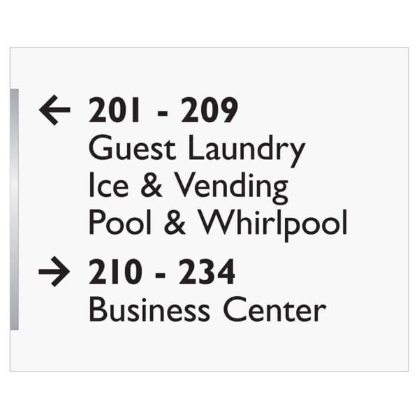 Help guests navigate your hotel easily with directional signs. Signs feature flat copy and come with foam tape for easy mounting. Directionals are for interior and exterior use.