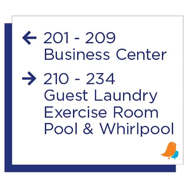 Help guests navigate your hotel easily with directional signs. Signs feature flat copy and come with foam tape for easy mounting. Directional are for interior use only.