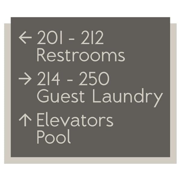 Help guests navigate your hotel easily with directional signs. Signs feature raised copy and come with foam tape for easy mounting. Directionals are made with vandal-proof photopolymer for exterior use.