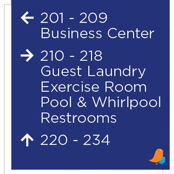 Help guests navigate your hotel easily with directional signs. Signs feature flat copy and come with foam tape for easy mounting. Directional are for interior use only.