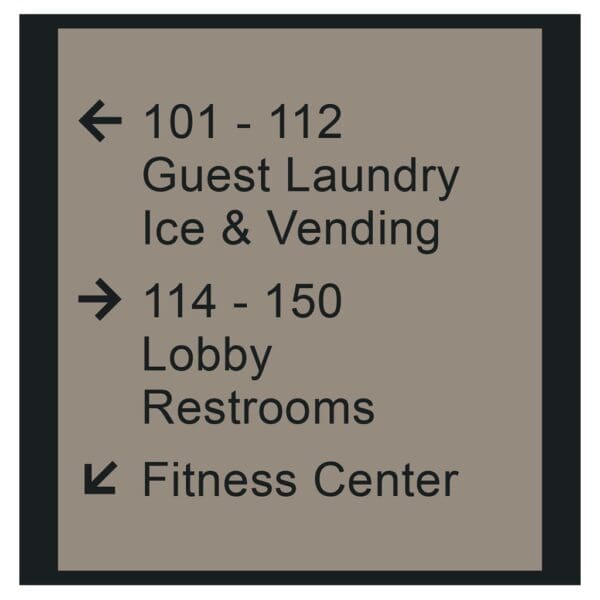 Help guests navigate your hotel easily with directional signs. Signs feature raised copy and come with foam tape for easy mounting. Directionals are made with a vandal-proof photopolymer for interior or exterior use.