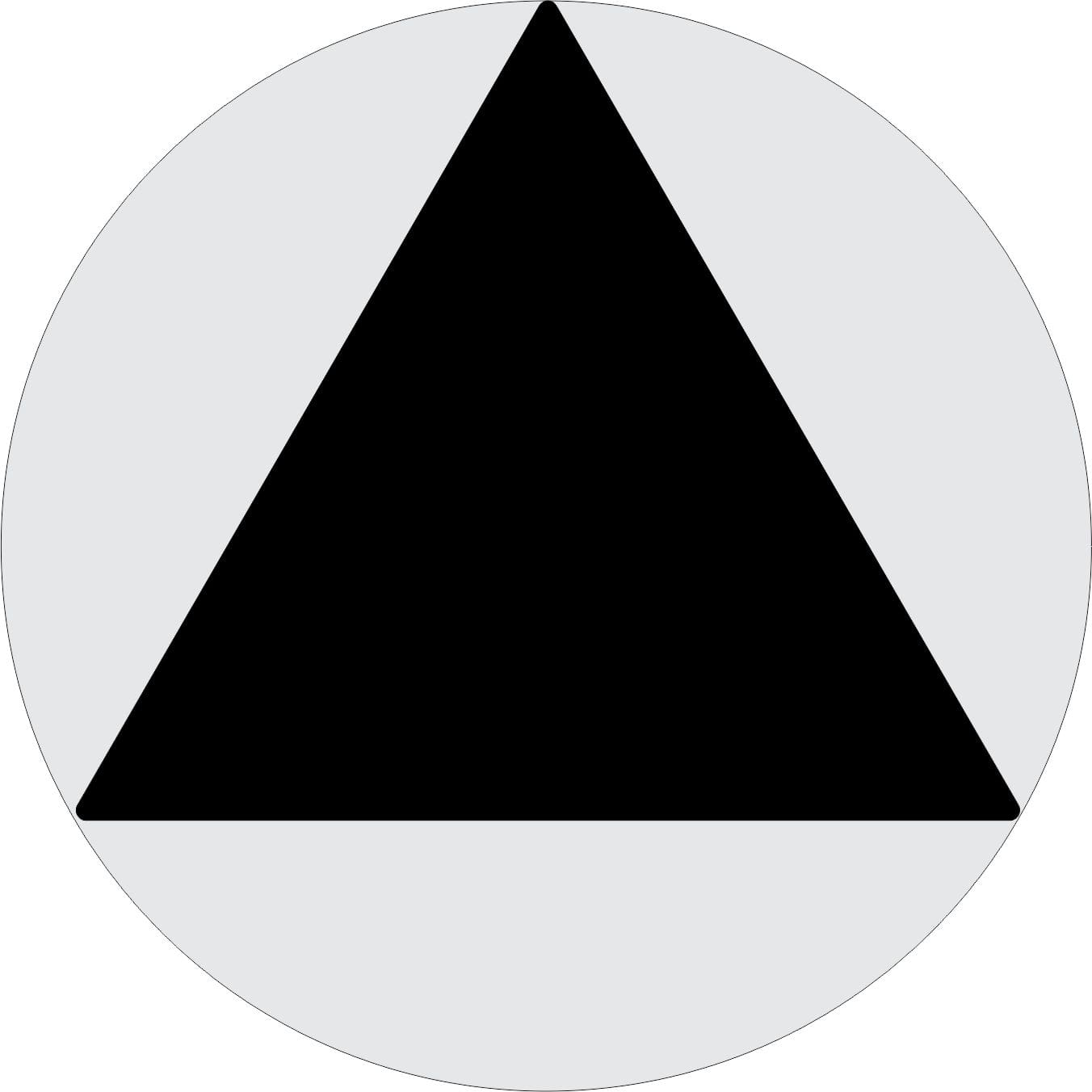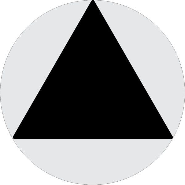 ID.4091 T24 Unisex Accessible Door Sign – Clear Acrylic Triangle Face Panel, Radius Corners, Chamfered Edges, Face/Sides Painted, Perm. Mount to Backer, 12″ Diameter 0.25″ Clear Acrylic Circle Back Panel, Chamfered Edges, Face/Sides Painted, VHB Mount