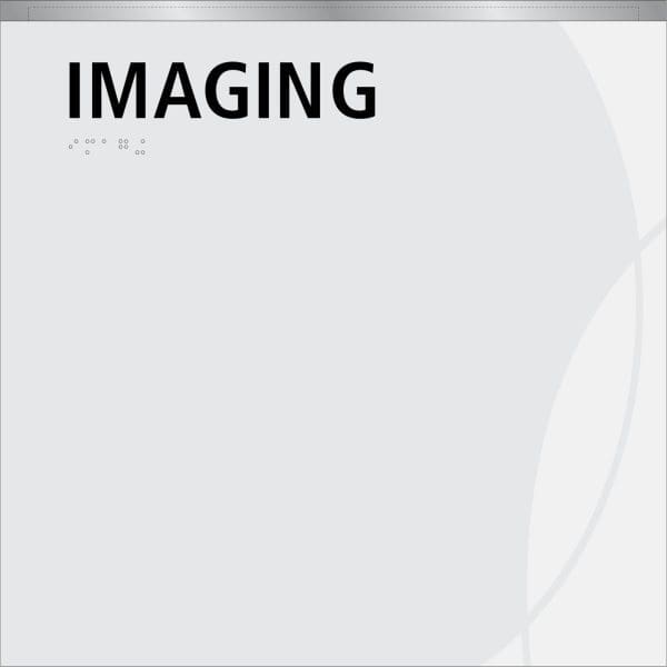 ID.4040 Department ID – Clear Acrylic Panel, Custom Tab Top, Face/Sides Painted 2 Colors, Applied Tactile, Clear Braille, VHB Mount, 0.375″ Brushed Alum. Accent Bar, Routed Channel, Clearcoat, Perm. Mount to Panel