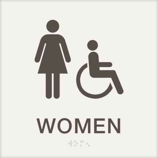 3355.10ID Women Restroom Handicap ID – Photopolymer Panel, Beveled Edges, Face/Sides Painted, Raised Copy, Tipped, Painted Braille, Clearcoat, VHB Mount