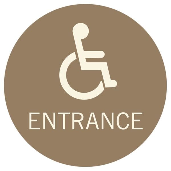 Accessible Entrance signs feature flat text and foam tape on the back for easy mounting. Signs are for interior use only.