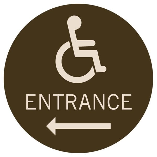 Accessible Entrance signs feature flat text and foam tape on the back for easy mounting. Signs are for exterior use only.