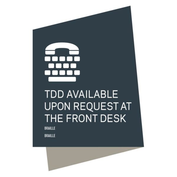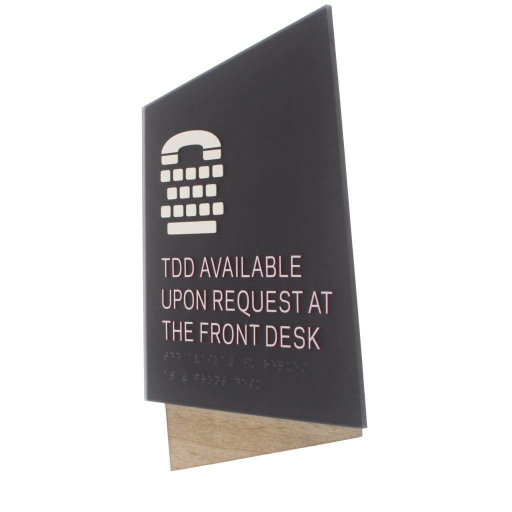 Area of refuge signs and TTD Phone signs are an essential part of making your hotel safe for people of all abilities. Sign comes with digitally printed woodgrain backer and foam tape on back for easy mounting.