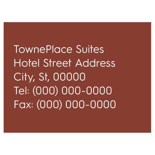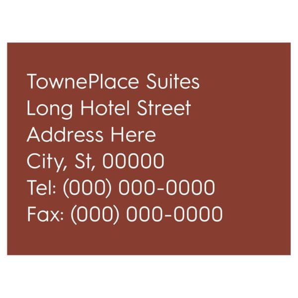 Help guests and visitors navigate your hotel by prominently displaying the address and contact information for your business center. Sign features flat copy and comes with foam tape for mounting. Sign is for interior use only.