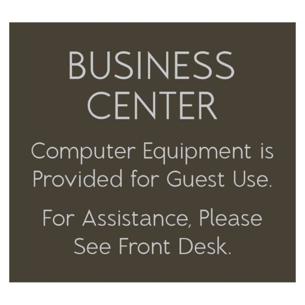 Informational signs use text and symbols to display need to know information quickly and easily to guests and employees.