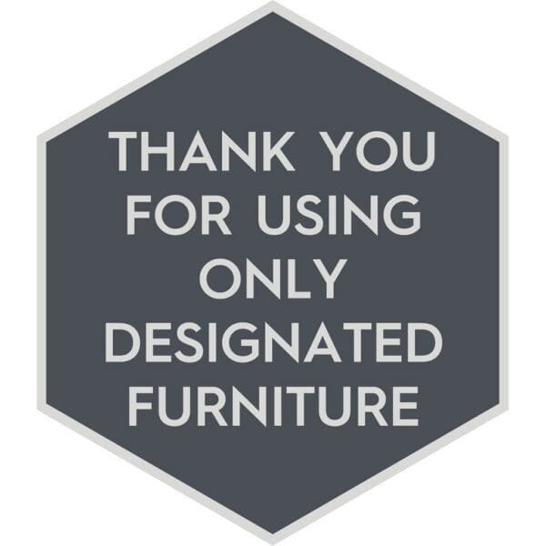 Place on furniture to help enforce new distancing policies at your hotel. Designated Furniture decals are made with self-adhesive vinyl and for interior use only.