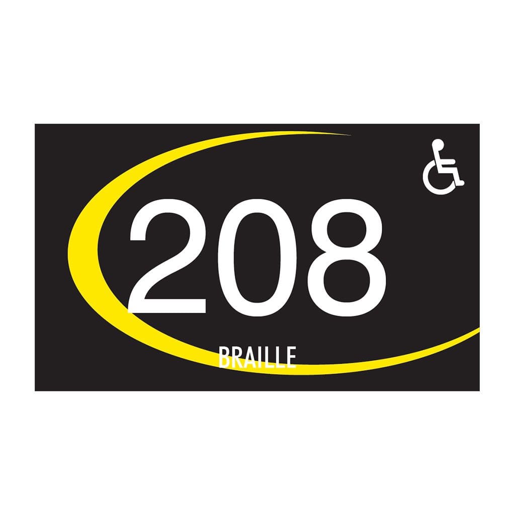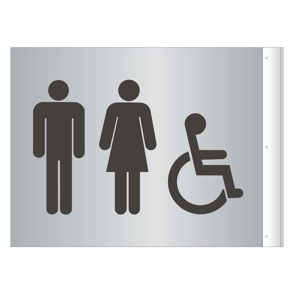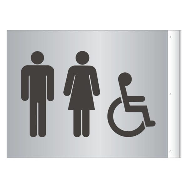 Double-sided restroom sign is used to help guests and employees find their intended destination. Sign is mounted to the wall and contains identical tactile text on both sides. Signs come with mounting hardware and are for interior use only.