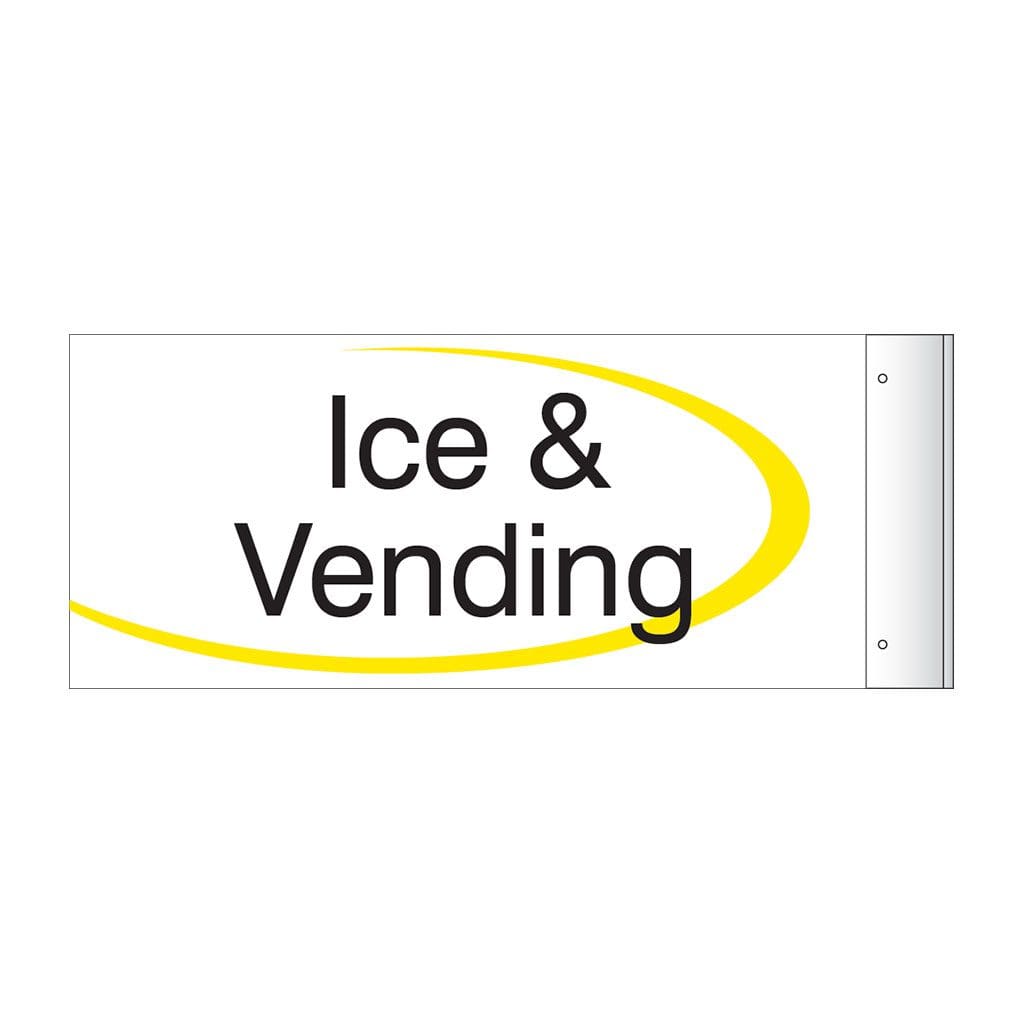 Ice & Vending flag sign is used to help guests and employees find their intended destination. Sign is mounted to the wall and contains identical flat text on both sides. Signs come with mounting hardware. For interior use only.