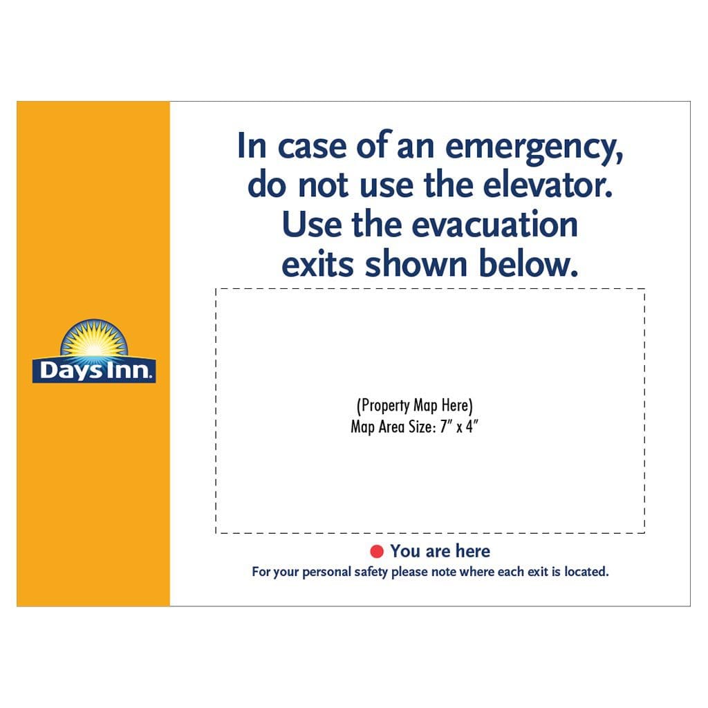 Keep guests safe during an emergency with elevator evacuation signs. Signs use flat copy and comes with foam tape for easy mounting. For interior and exterior use.