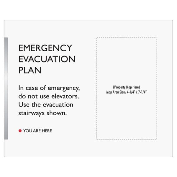 Keep guests safe during an emergency with elevator evacuation signs. Signs use flat copy and comes with foam tape for easy mounting. For interior and exterior use.