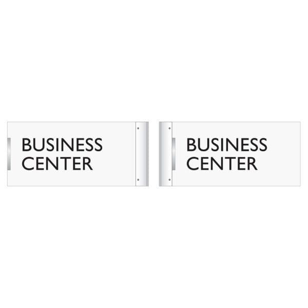 Help customers navigate your hotel by denoting rooms with double-sided overhead flag signs, featuring digitally printed text and symbols. Comes with mounting brackets. For interior and exterior use.