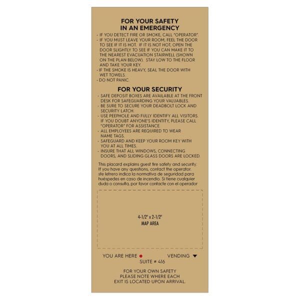 Keep guests safe during an emergency with elevator evacuation signs. Signs use flat copy and comes with foam tape for easy mounting. For interior use only.