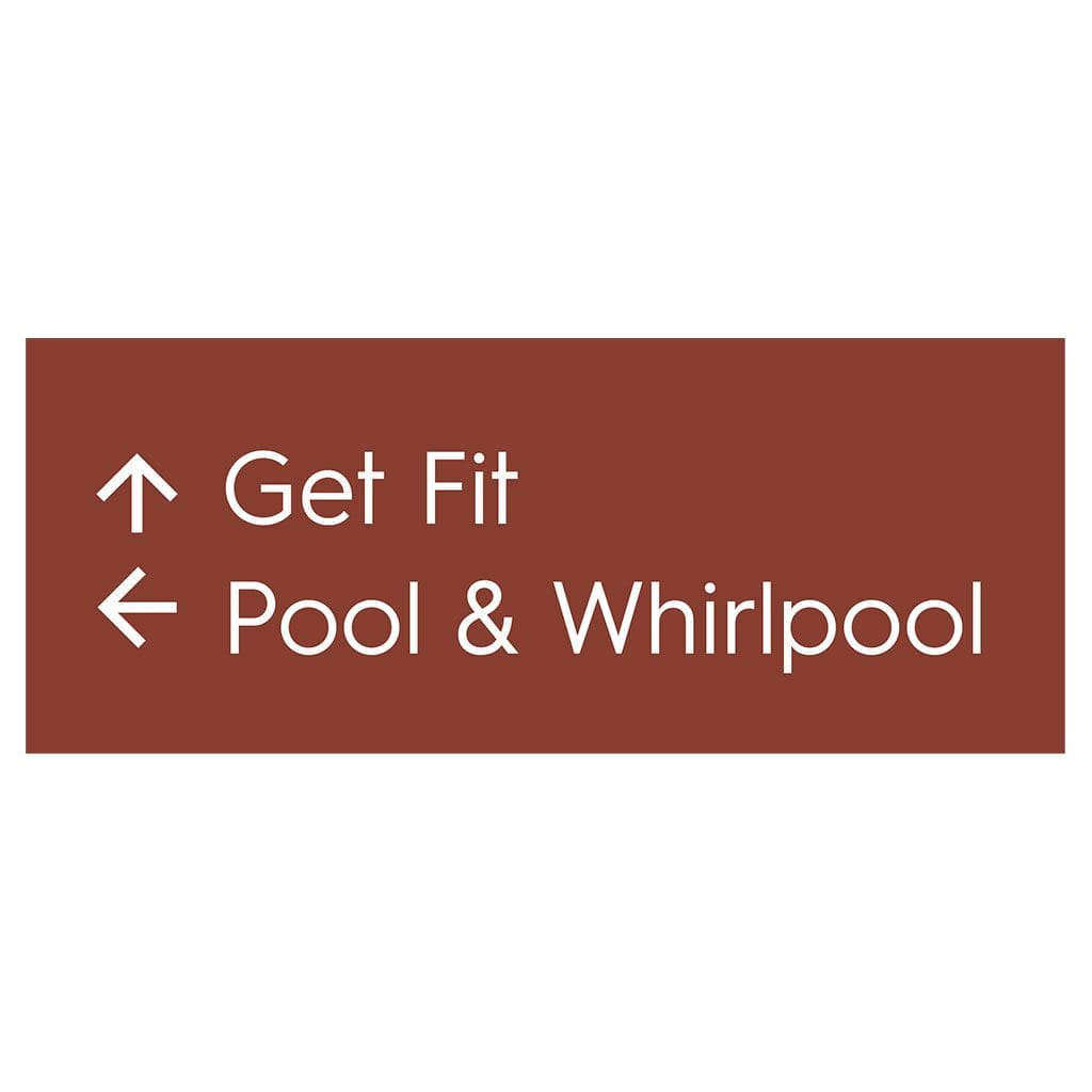 Help guests navigate your hotel easily with directional signs. Signs feature flat copy and come with foam tape for easy mounting. Directionals are made with vandal-proof photopolymer for interior and exterior use.