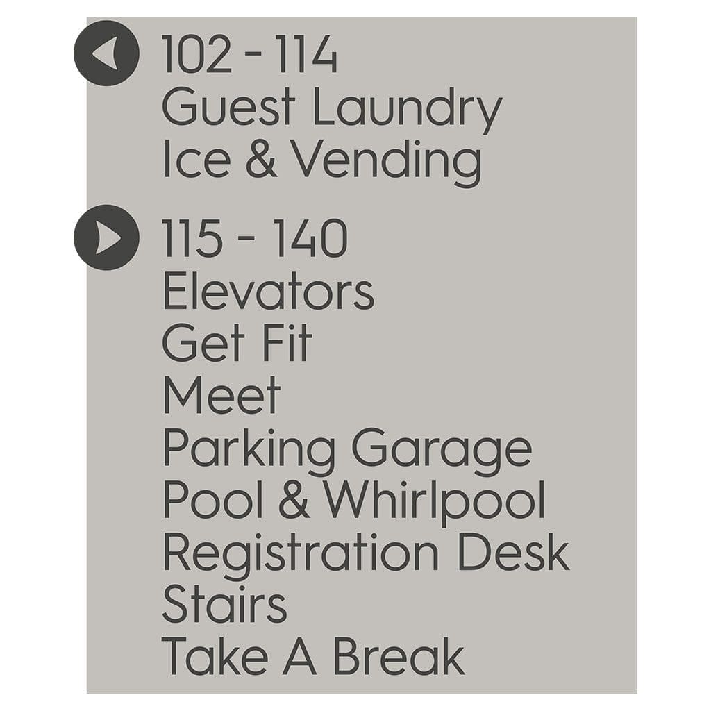 Help guests navigate your hotel easily with directional signs. Signs feature flat copy and come with foam tape for easy mounting. Directionals are made for interior or exterior use.