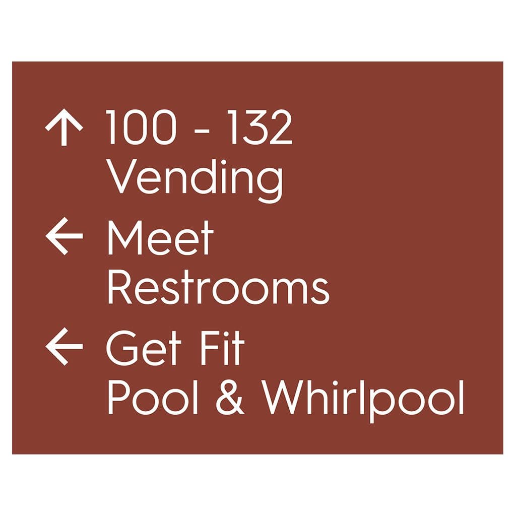 Help guests navigate your hotel easily with directional signs. Signs feature flat copy and come with foam tape for easy mounting. Directionals are made with vandal-proof photopolymer for interior and exterior use.