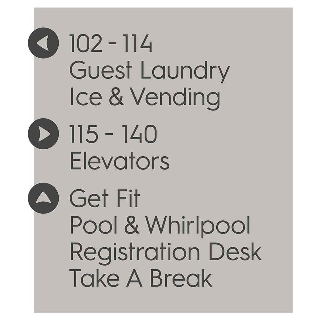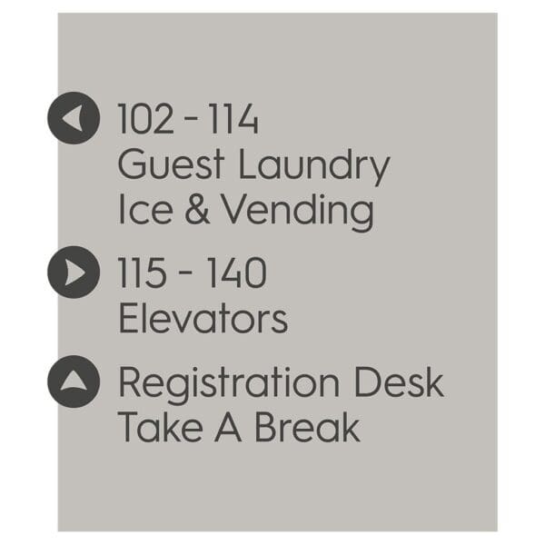 Help guests navigate your hotel easily with directional signs. Signs feature flat copy and come with foam tape for easy mounting. Directionals are made for interior or exterior use.