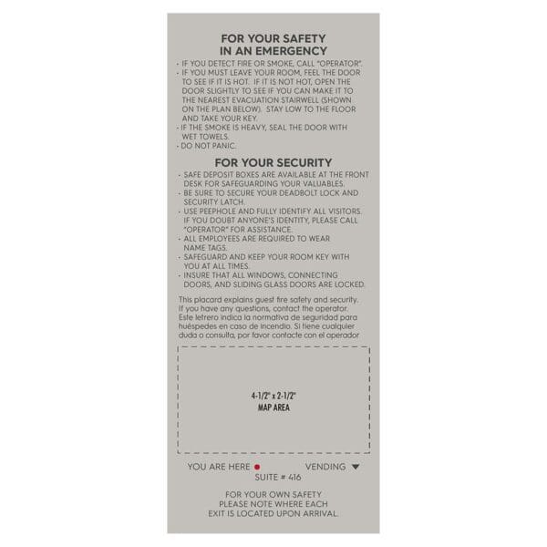 Informational insert with flat print. To be used with the Guestroom Insert Holder.