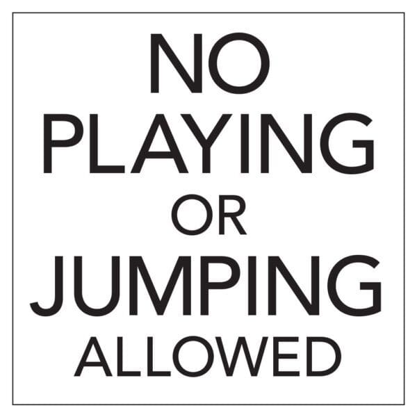 Keep guests and employees safe with self-adhesive “No Playing” decals.