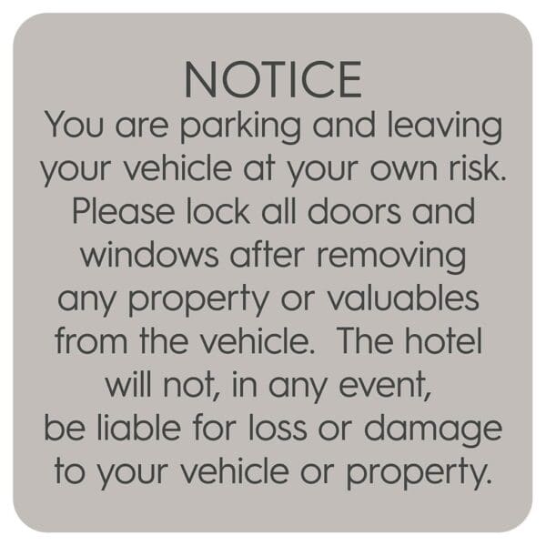 Brand-approved Parking Notice signs come with flat text and ensure your guests are complying with hotel parking policies. Use the selection below to choose wall mount or post/fence mount (hardware provided). For exterior use only.