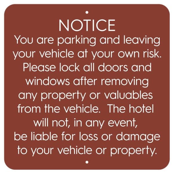 Brand-approved parking signs come with flat text to ensure your guests are complying with hotel parking policies. Sign comes with holes for post mounting and are for exterior use only.