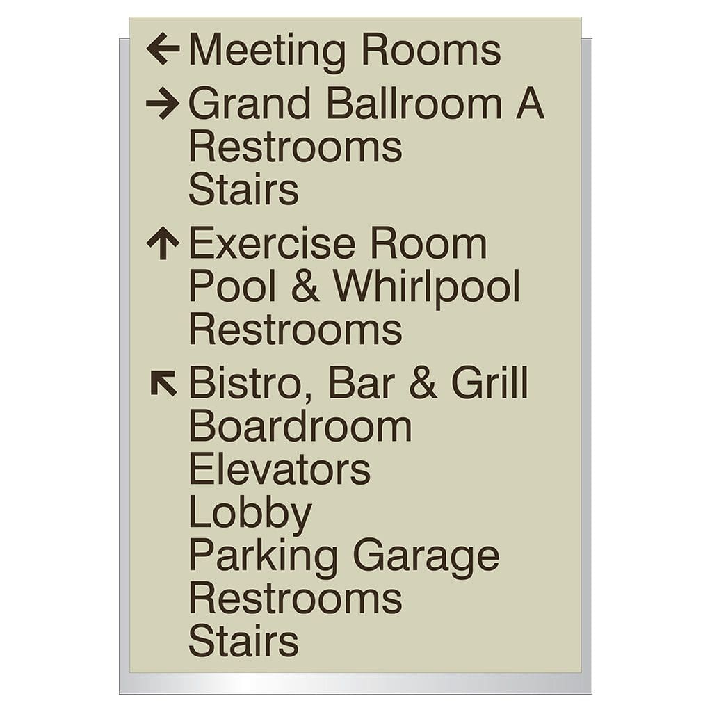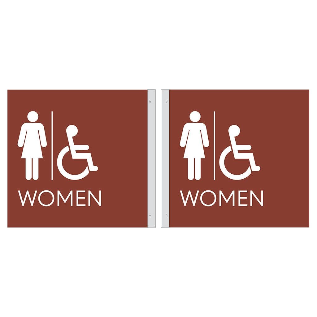 Help customers navigate your hotel by denoting restrooms with double-sided overhead restroom signs, featuring digitally printed text and symbols. Comes with mounting brackets. For interior and exterior use.