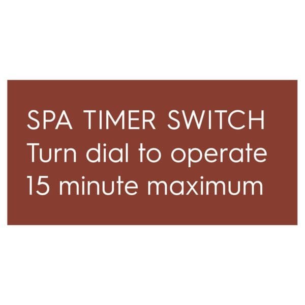 Brand-Approved Spa Timer Switch signs are made with photopolymer ensure that your guests remain safe and informed while using the spa. Text on sign is flat and is for exterior use only. See below to select between wall mount or a post/fence mount (hardware provided).