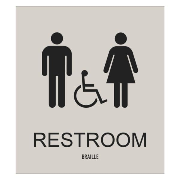 Mark each bathroom with a restroom identification sign. Restroom signs feature raised text, symbols and Grade 2 Braille. Signs come with foam tape on back for easy mounting.