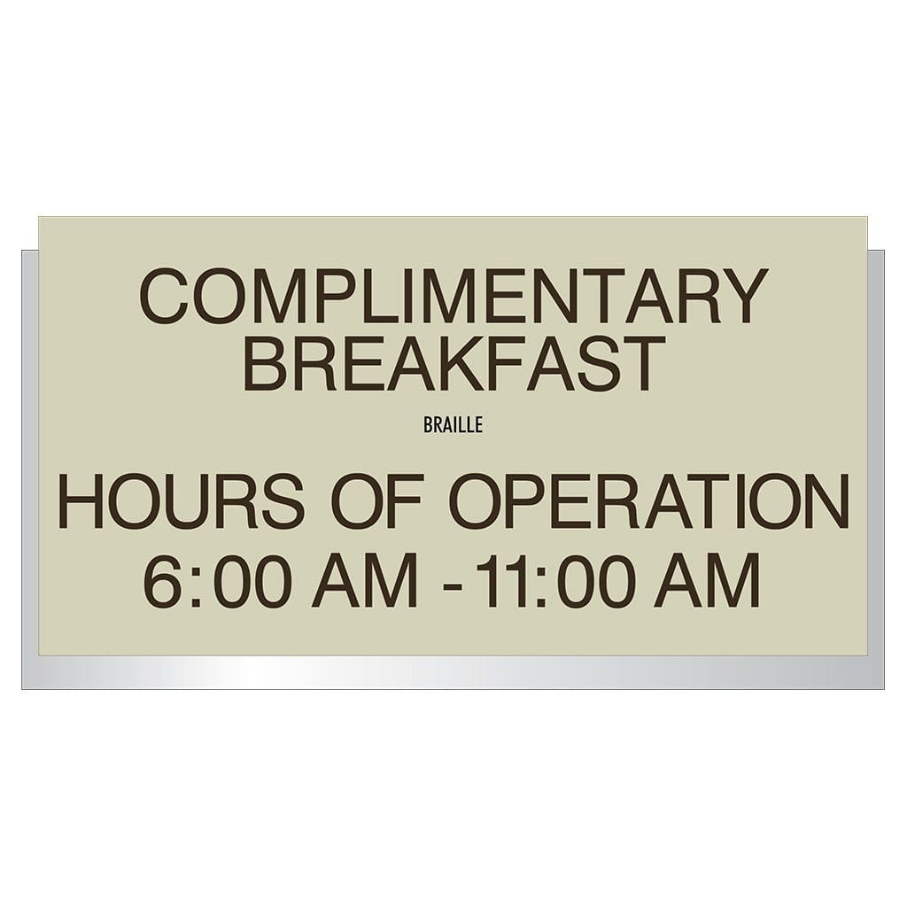 Help customers navigate your hotel with double-sided, overhead directional signage, featuring digitally printed text and symbols. Comes with mounting brackets for interior and exterior use.