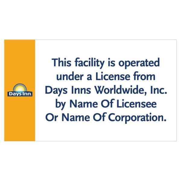 Specify the owner and operator of your hotel. Sign features flat copy and comes with foam tape on the back for easy mounting. For interior use only.