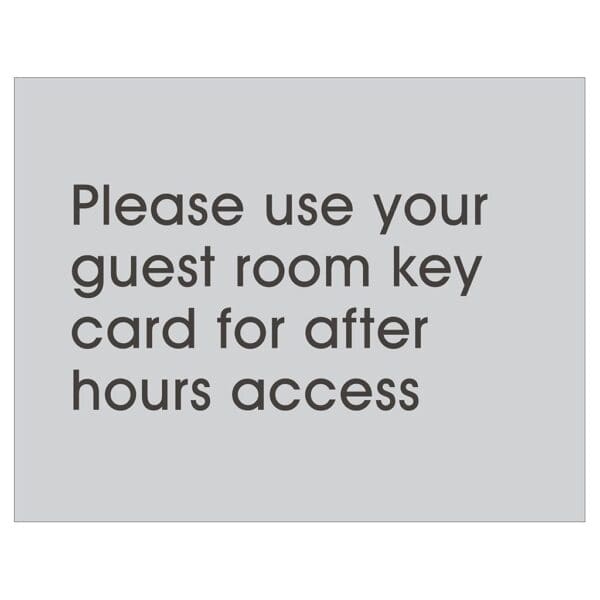 Inform guests when and where they have to use their key card to gain entry. Text on sign in digitally printed and comes with foam tape on the back for easy installation. For interior and exterior use.
