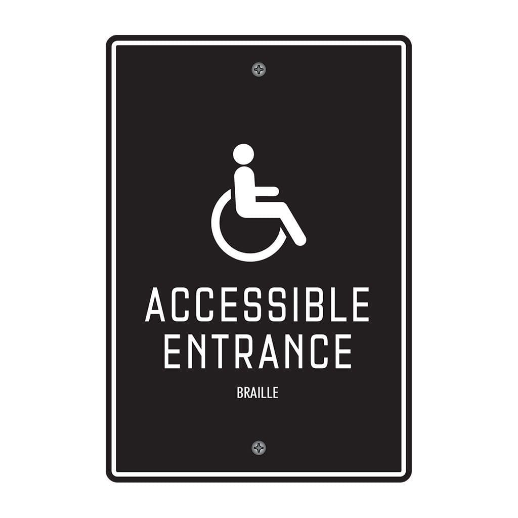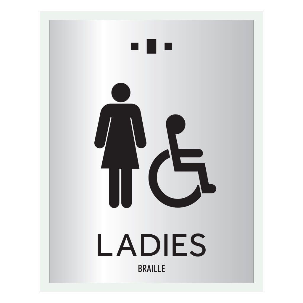 Mark each bathroom with a restroom identification sign. Restroom signs feature raised text, symbols and Grade 2 Braille. Signs come with foam tape on back for easy mounting. For interior use only.