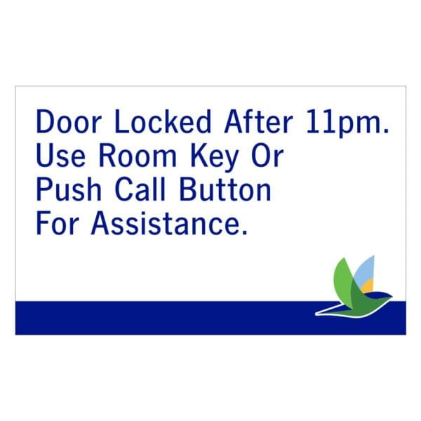 Inform guests when and where they have to use their key card to gain entry or ring the bell for entry. Text on sign in raised and sign comes with foam tape on the back for easy installation. For exterior use only.