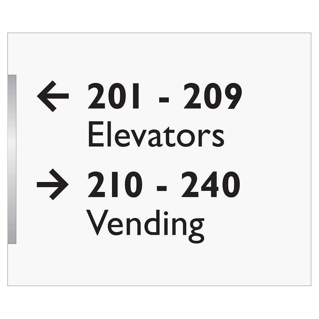 Double-sided restroom sign is used to help guests and employees find their intended destination. Sign is mounted to the wall and contains identical tactile text on both sides. Signs come with mounting hardware and are for interior or exterior use.