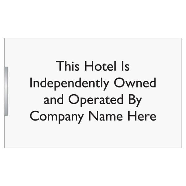 Specify the owner and operator of your hotel with brand-approved Owner and Operator signage. Sign features flat copy and comes with foam tape on the back for easy mounting. For interior use only.