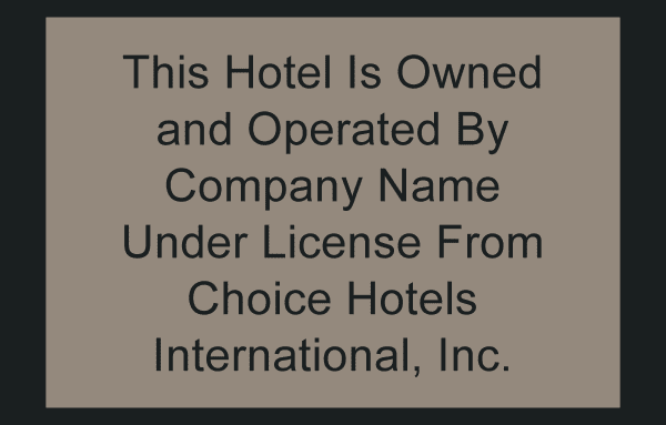 Specify the owner and operator of your hotel. Sign features flat copy and comes with foam tape on the back for east mounting.