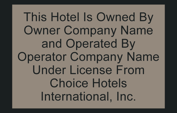 Specify the owner and operator of your hotel. Sign features flat copy and comes with foam tape on the back for east mounting.