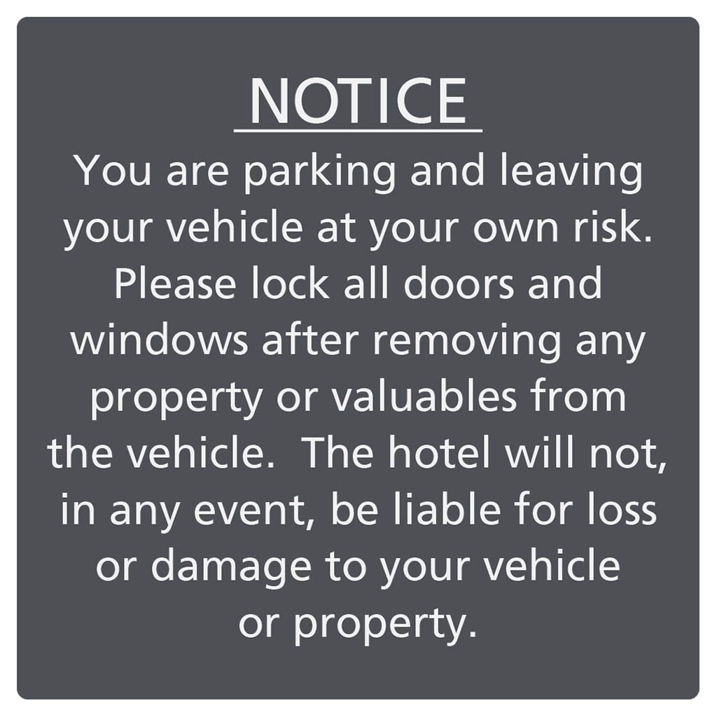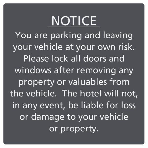 Brand-approved Parking Notice signs come with flat text and ensure your guests are complying with hotel parking policies. Use the selection below to choose wall mount or post/fence mount (hardware provided). For interior and exterior use.